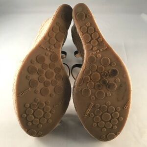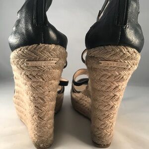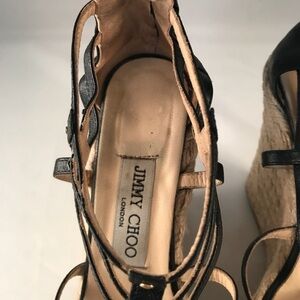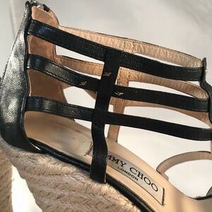 Feel nautical and naughty in these summer stunners! Gorgeous and effortlessly chic these shoes will be your go to wedges in no time. One sandal is missing its leather flower (pictured). Some wear on bottoms and insoles. Some dirt in rope sides (but you can get those cleaned really easily). In otherwise amazing shape. Let me know if you have any questions before purchase. I love the Jimmy Choo markings on the zippers and heel plates. 5 inches from heel to floor. Ready to dance the night away!