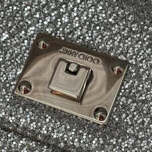 Ruby Glitter Crossbody Bagby Jimmy Choo. NWT. No flaws or stains. This stunning Jimmy Choo Ruby crossbody bag is crafted from shimmering metallic grey glitter fabric for a glamorous finish. It features the signature Rebel lock closure, a sleek structured silhouette, and a chic silver-tone link chain strap. Inside, you'll find a zip pocket with a tassel pull for a touch of elegance and secure storage. The perfect statement piece for evening events or adding sparkle to your everyday look.
