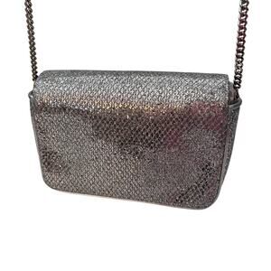 Jimmy Choo Ruby Glitter Crossbody Bag Link Chain Metallic Grey Glitter