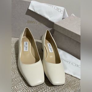 Jimmy Choo Rydea 45 Patent Pump, Brand Size 37.5 (US 7.5) Nappa Leather/Latte