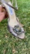 Jimmy Choo Satin Gemstone Open Toe Heels Pewter Champagne size 10, heel 4 1/2