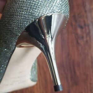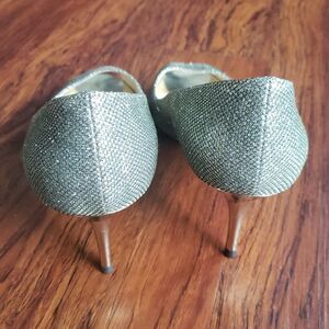 Jimmy Choo Gold Shimmery Mesh Overlay Holiday Party Kitten Heels Size 38