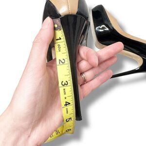Gift your feet these stunning pumps by Jimmy Choo today! Crafted in smooth, beige leather and black patent leather for a colorblock look, the platform-toe pumps bring a blend of quality and appeal. They are mounted on platforms and 13 cm heels. (1 inch/5 inch heel)