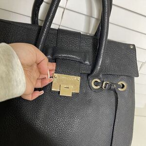 Jimmy Choo Shopper Bag Rosabel Pebbled Black Leather Large Satchel Tote Shoulder