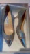 Jimmy Choo Silver Champagne Metallic Pointed Toe Kitten Heels Shoes 37.5 6.5 7