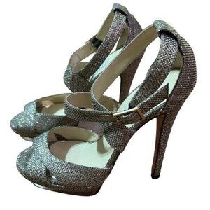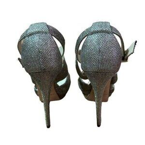 Jimmy Choo Silver Lamé Glitter Kuki Platform Sandals size women’s 38.8 or US 8. Incredible gently used condition. Authentic.