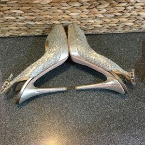 Jimmy Choo Silver “Nova” Peep Toe Heels