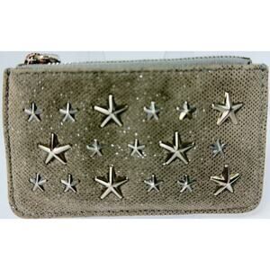 Jimmy Choo Silver Star Studded Coin Purse Wallet with Carabiner Clip Keychain