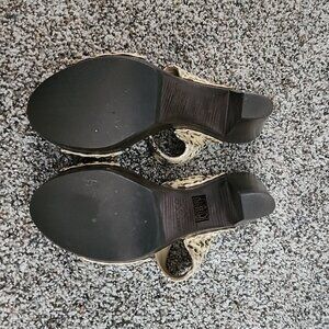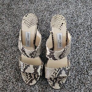Jimmy Choo Snakeskin Python Slides Sandal Wooden Studded Heels Sz 40