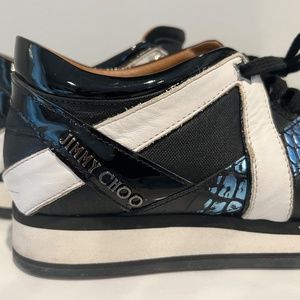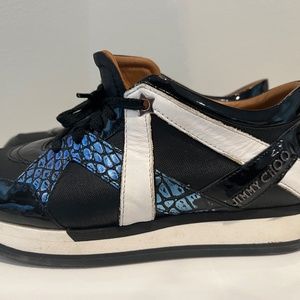 Jimmy Choo sneakers in great condition, few minor scuffs in the back (pictured). Holographic animal print mixed with black and white. Size 38