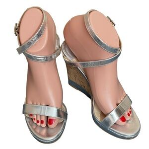 * Silver Leather Jimmy Choo Wedge Sandals