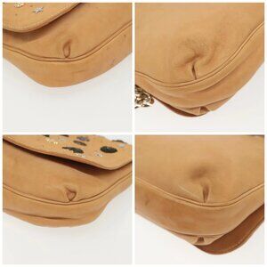 Jimmy Choo Studs Shoulder Bag Leather Beige Gold Auth