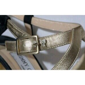 Jimmy Choo Suede Colorblock Pattern Black And Gold Sz 40 Slingback Sandals