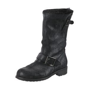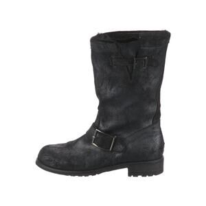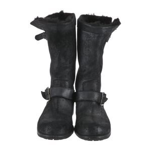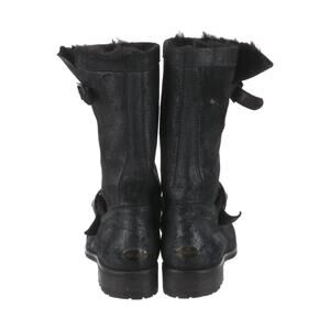 Jimmy Choo Suede Fur Trim Moto Boots Black Buckle Women’s Size 36 Mid Calf