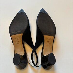 Jimmy Choo Suede Slingback Pumps Pointed Toe Block Heel Luxury Classic Italy