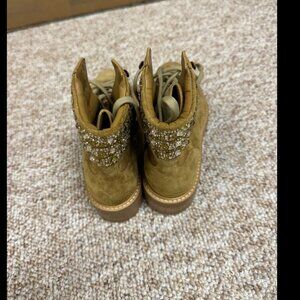 Jimmy Choo Suede Swarovski Crystal Womens Eshe Flat Boots Camel 38.5