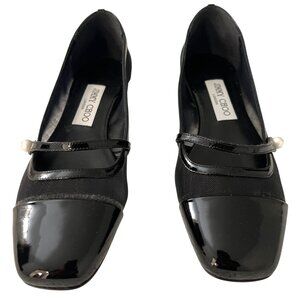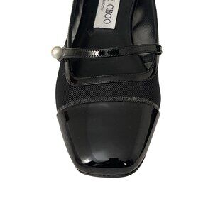 Jimmy Choo Sz 37.5 7.5 Elisa Black Mesh Pearl Mary Jane Flat Shoes NEW