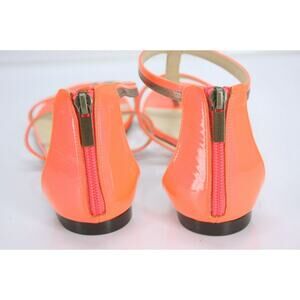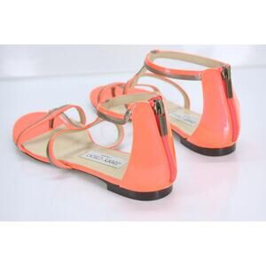 Jimmy Choo Orange patent leather criss cross strappy Sandals in size 38.5 ( Glossy patent straps elegantly wrap the Lottie sandal by Jimmy Choo to complement both formal and casual affairs.