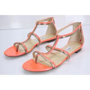 Jimmy Choo Tabitha T Strap Caged Thong Sandals Size 37.5 Orange Platinum $795