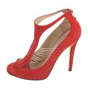 The Jimmy Choo Tangerine Suede Cutout Heeled Sandal is a stylish and sophisticated choice for women looking to make a statement. Crafted in Italy with high-quality suede, these sandals feature a peep toe design and a unique gladiator style. The zip closure and slim heel add a touch of elegance, while the vibrant tangerine color adds a pop of color to any outfit. With its medium width and comfortable fit, these heels are perfect for casual occasions where you want to make a fashion-forward impression. The shoe comes with its original box and dust cover, making it a great addition to any shoe collection. Includes the original shoe box and dust cover. Please review all pictures for condition.