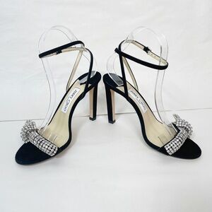 In great condition Jimmy Choo Thyra 100 Crystal Suede Heels. Minor wear at back heels and insole foot area.
