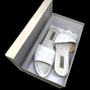 Jimmy Choo Tiaret Flat Sandals Size 40 US 10 White Calf Leather Dust Bag Boxed