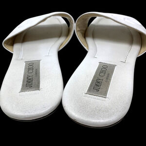 Simple, versatile, and stylish, these flat sandals from the House of Jimmy Choo are ideal for everyday use. They are crafted from white calf leather and are comfortable to wear.