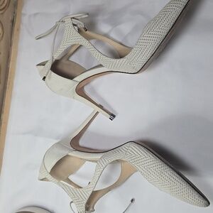 Jimmy Choo Tie up Pumps Eggshell Off white Weave Texture 37.5