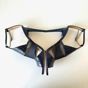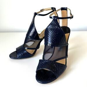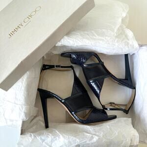 Jimmy Choo Timbus 100 Snakeskin Mesh Heel Sandal Navy Size 39