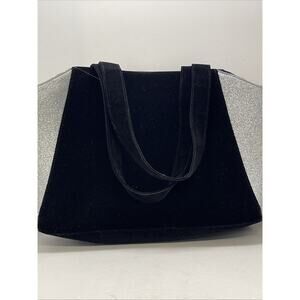 Jimmy Choo Tote Bag Black Velvet Silver Glitter Carry Overnight Velvet 15x5x12”