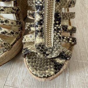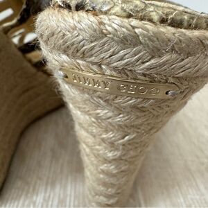 Jimmy Choo Two Tone Embossed Snakeskin Zip Detail Strappy Espadrille Wedge Sandals Size 39