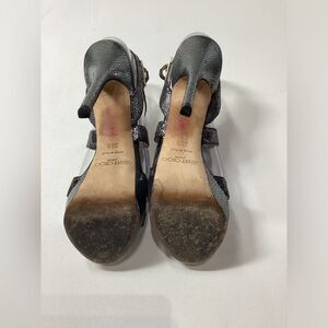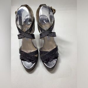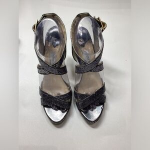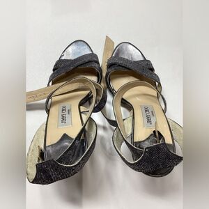 Jimmy Choo Vamp Metallic Silver & Black Platform Heel Sandals Size EU 38.5