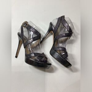 These beautiful dark silver metallic strapped sandals with slingback heel will make you look super glamorous for any type of party.