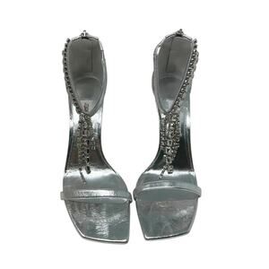 Jimmy Choo Verity 100 Embellished Leather Sandals Heels Silver 41