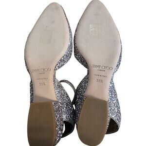 Jimmy Choo Vicky Coarse Glitter Rose Gold Ankle Wrap Ballet Pumps 38.5