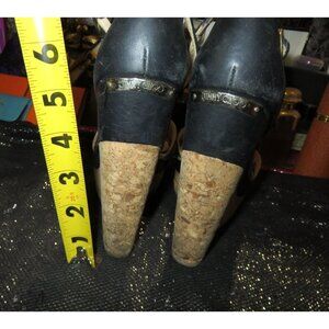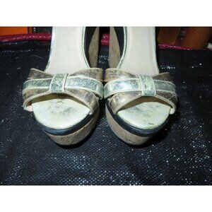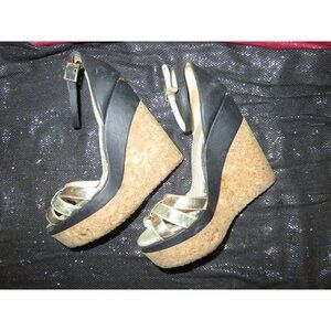 Elevate your style with Jimmy Choo's Metallic Leather and Cork Ankle Strap Wedges. Size 37 (US 7). Glamorous, vintage, comfortable and perfect for any occasion. Please do your own research on J Choo shoes to see if his size 37 will fit you as charts differ