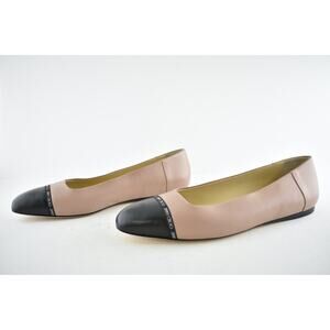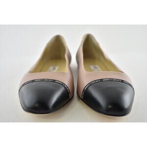 Jimmy Choo Watson Black Ballet Pink Leather Logo Slip On Ballerina Flats 39.5