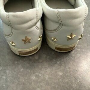 Jimmy Choo White Leather Low-Top Sneakers with Gold Star Accents – Size 37