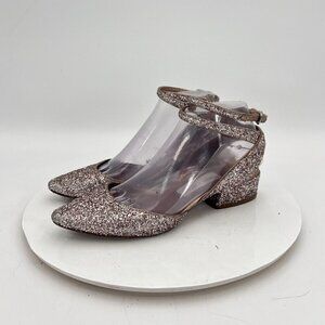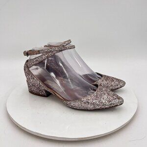 Jimmy Choo Women Size EU 37 US 7 Silver Pink Glitter Ankle Strap Low Heel Sandal