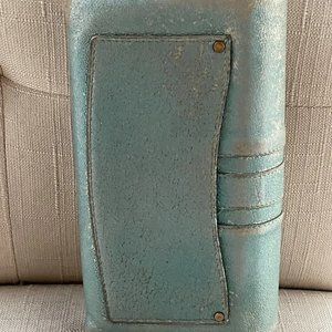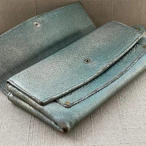 Jimmy Choo Women Wallet Cardholder Blue Leather Wristlet Clutch Purse Made Italy