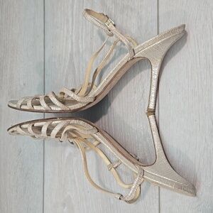 Jimmy Choo WomenElegant Strappy Heels in Shimmering Gold Sandals Shoes 37.5/7.5