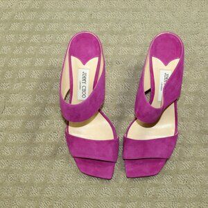 Jimmy Choo Women's 38.5 / 8.5 Hira Suede Mules Magenta NWOT