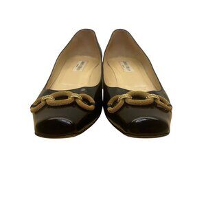 Jimmy Choo Women’s Black Patent Leather Chain Embellished Kitten Heels Size 41.5