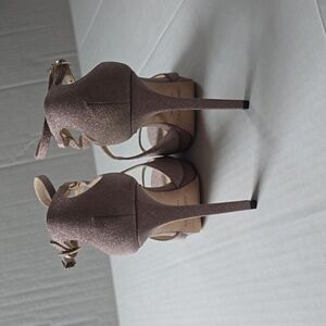4" (100mm) covered stiletto heel, 0.5" platform, feels like 3.5" heel