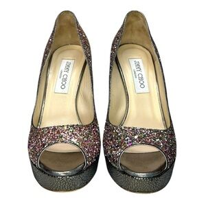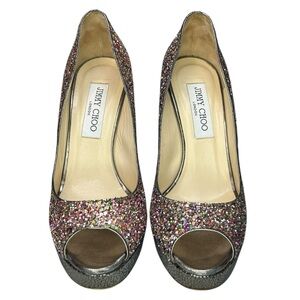 Jimmy Choo, Women’s Platform Pump ‘Crown’ Glitter, Multi Color, Size 37 IT, 7 US