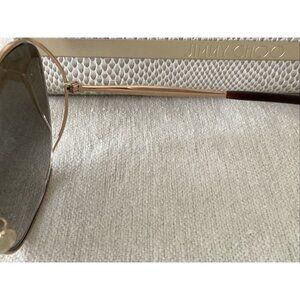 Jimmy Choo Womens Sunglasses Big Gold Rim Rhinestone On Arm W/case Gradient Lens