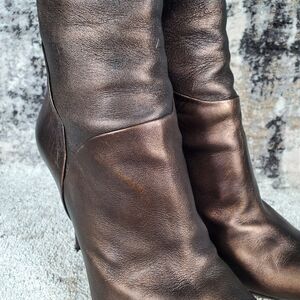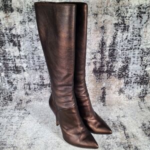 Jimmy Choo Women's Tall Heeled Boot Zipper Bronze Size 37.5/7.5