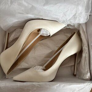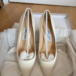 Jimmy Choo Romy 100 ivory satin pumps 🤍 Never been worn, tried on once! Discontinued and originally $850. Comes with never used dust bag and original box!