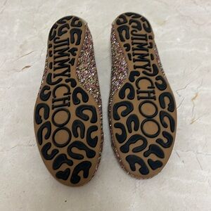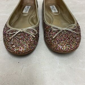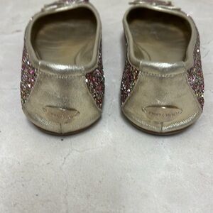 Jimmy Choo ballet flats. Multi colored gold sparkle with bow. Size 40 1/2