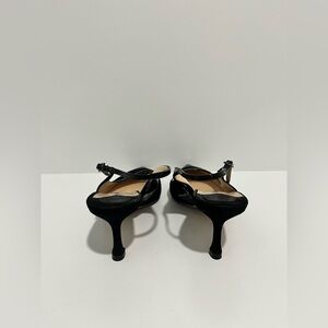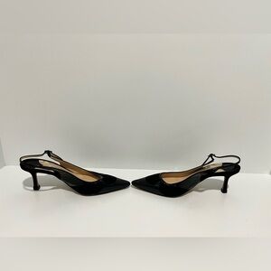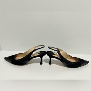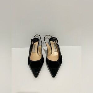 Jimmy Choo black patent leather and suede sling back kitten heel size 38/8